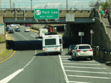 There is a bus stop along the ramp for exit 73 when travelling north. Bear right after the bus stop for Lemoine Avenue (NJ 67). Bear left for the George Washington Bridge.