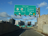 The ramp for exit 73 splits. Bear right for Hudson Terrace (CR 505). Bear left for Lemoine Avenue (NJ 67), Fletcher Avenue (US 9W), and Center Avenue.