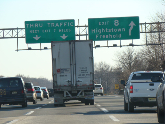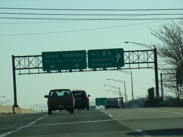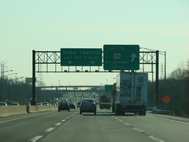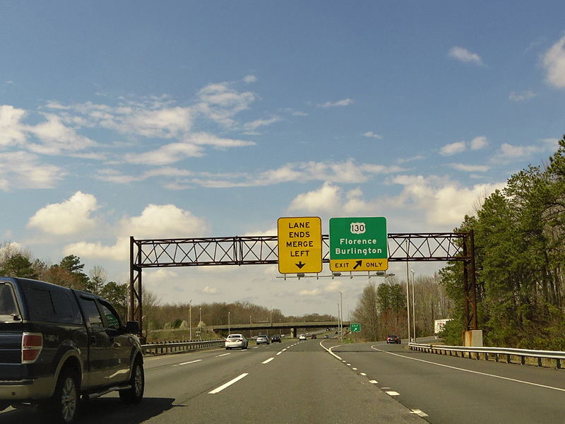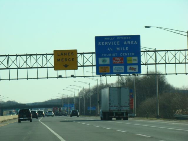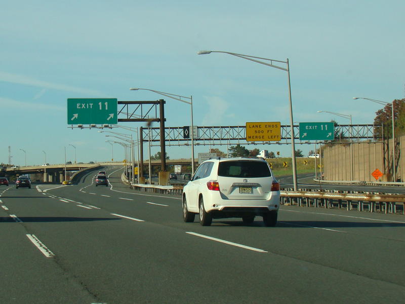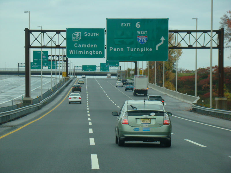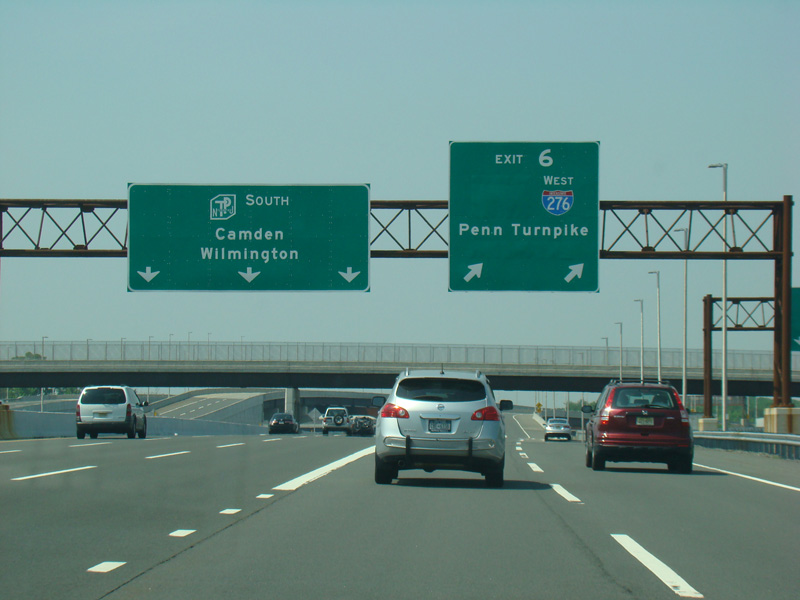 These pictures show the New Jersey Turnpike as it appeared after the extension of the car/truck lanes south to exit 6 but before the completion of the I-95/I-276 interchange in Pennsylvania that closed the gap in I-95. Prior to that point, the I-95 designation was unsigned along this section of the turnpike.