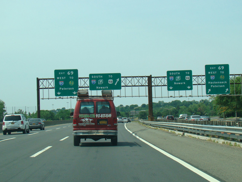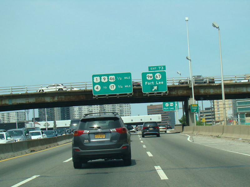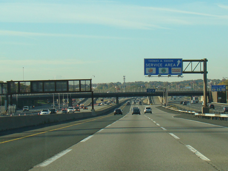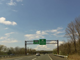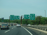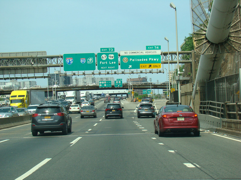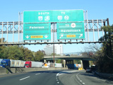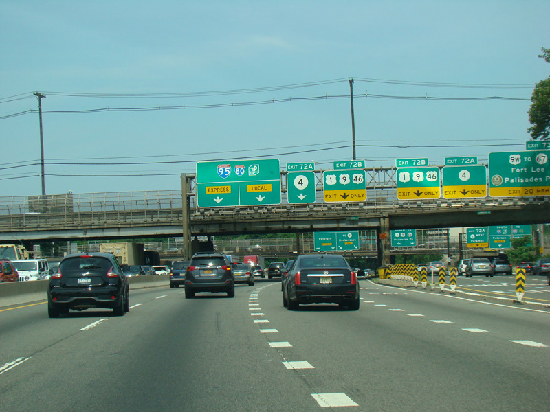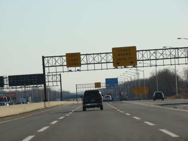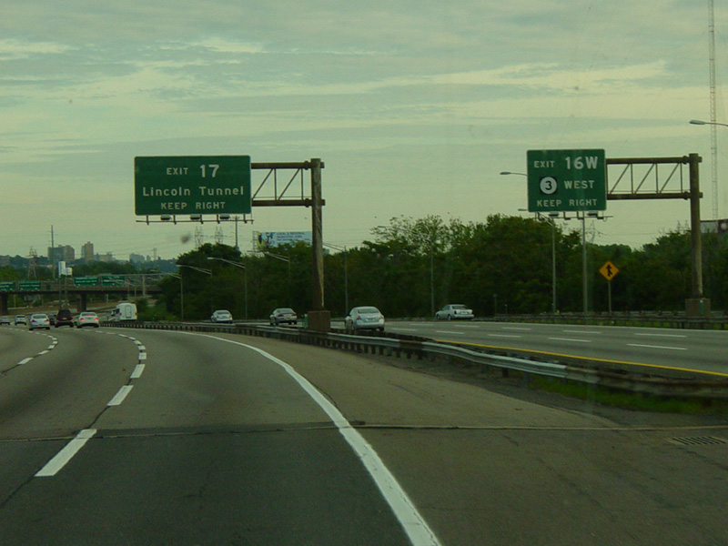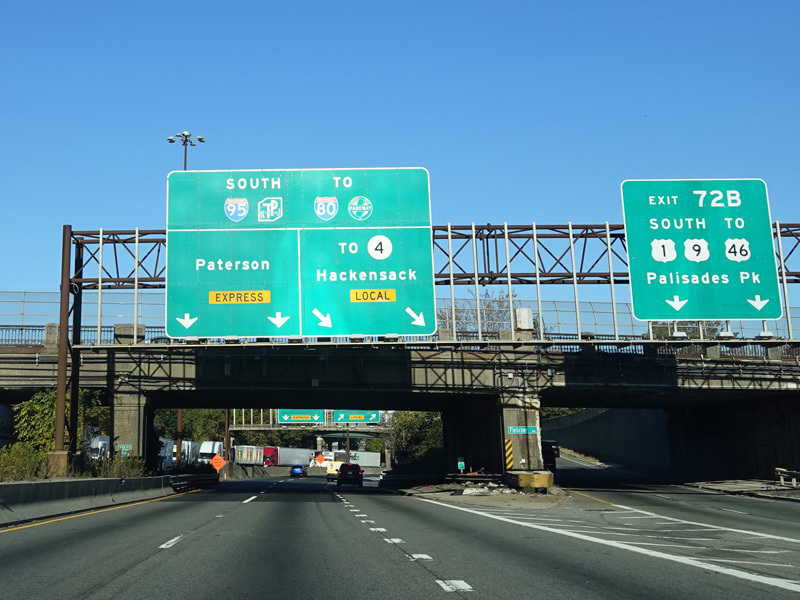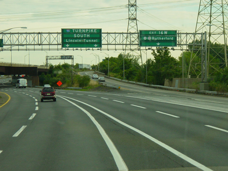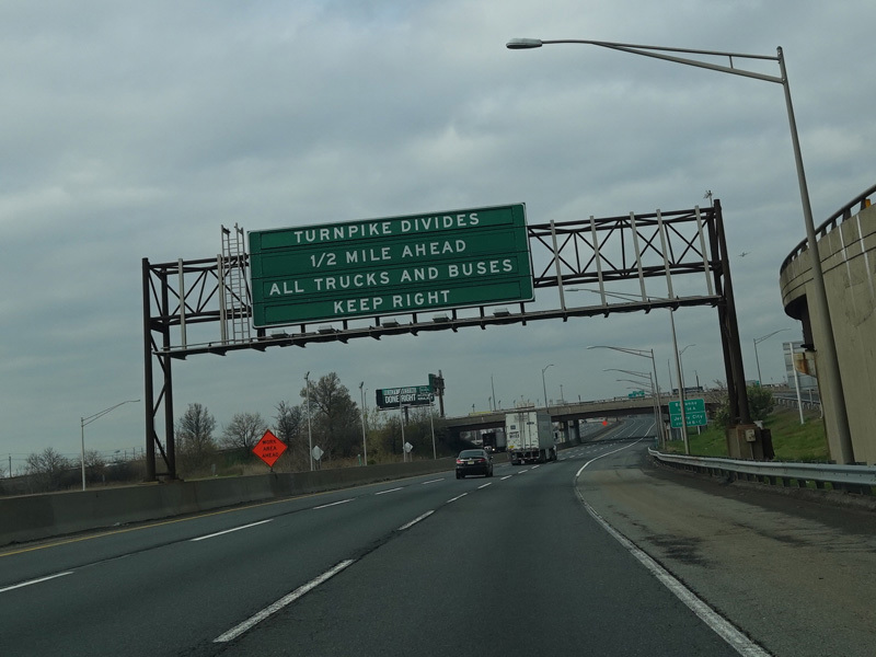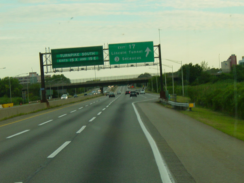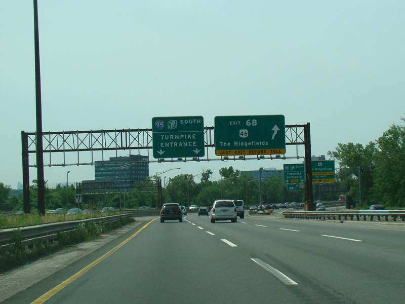 These pictures show the beginning of the New Jersey Turnpike, just past the George Washington Bridge, prior to the installation of a cashless tolling gantry in the area. The signs shown have been consolidated down to a single sign bridge to make room for the gantry.