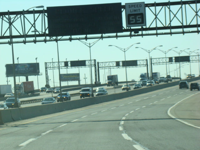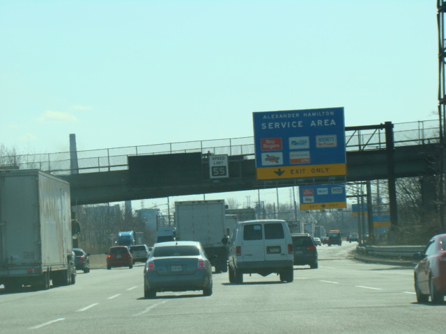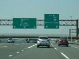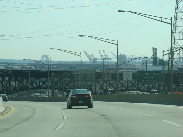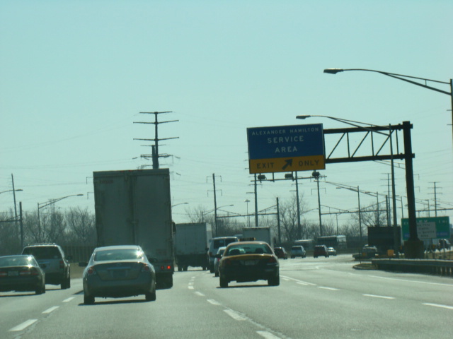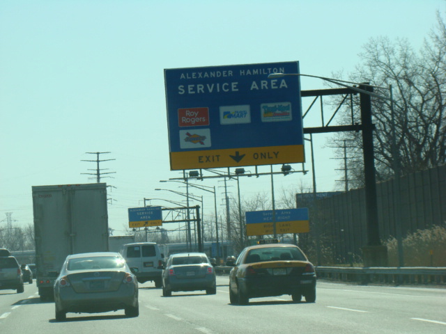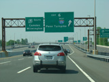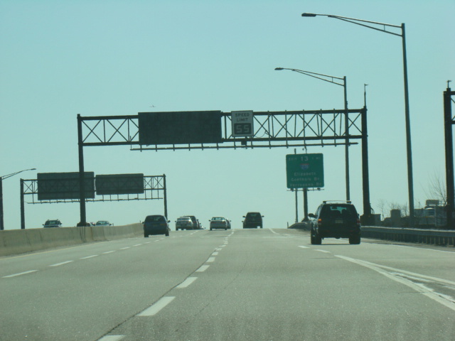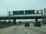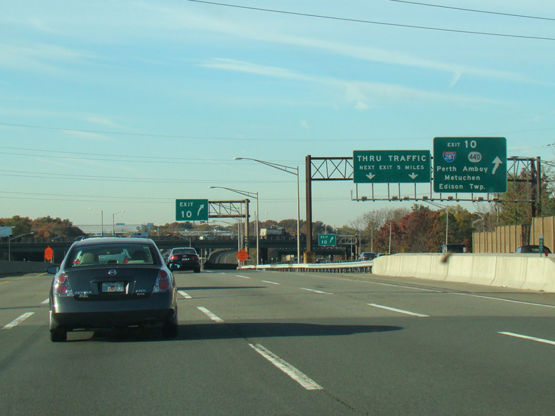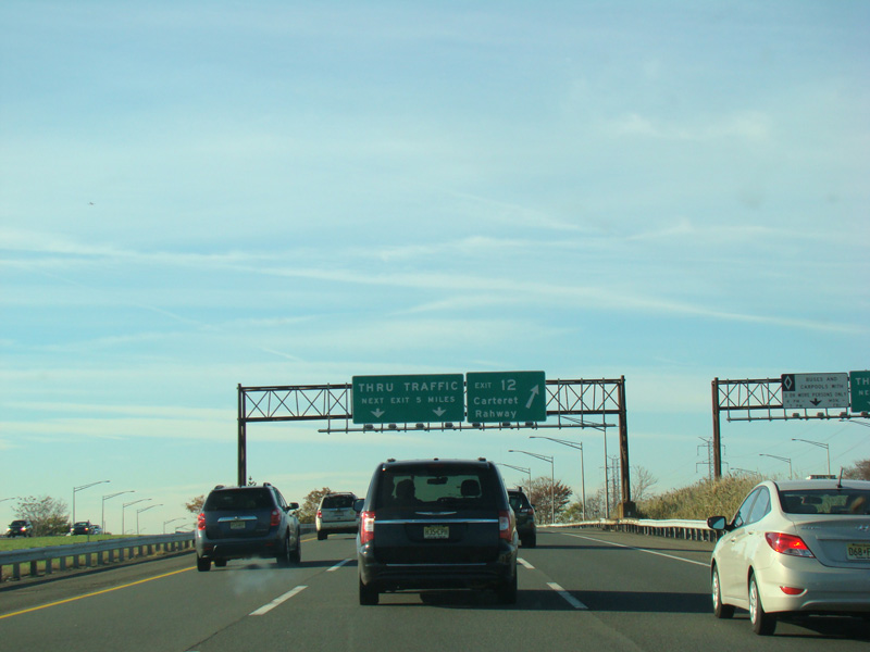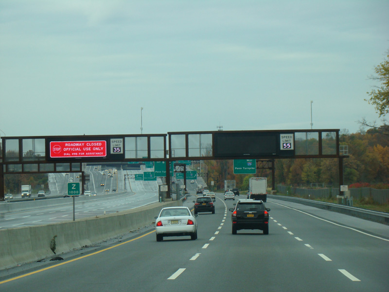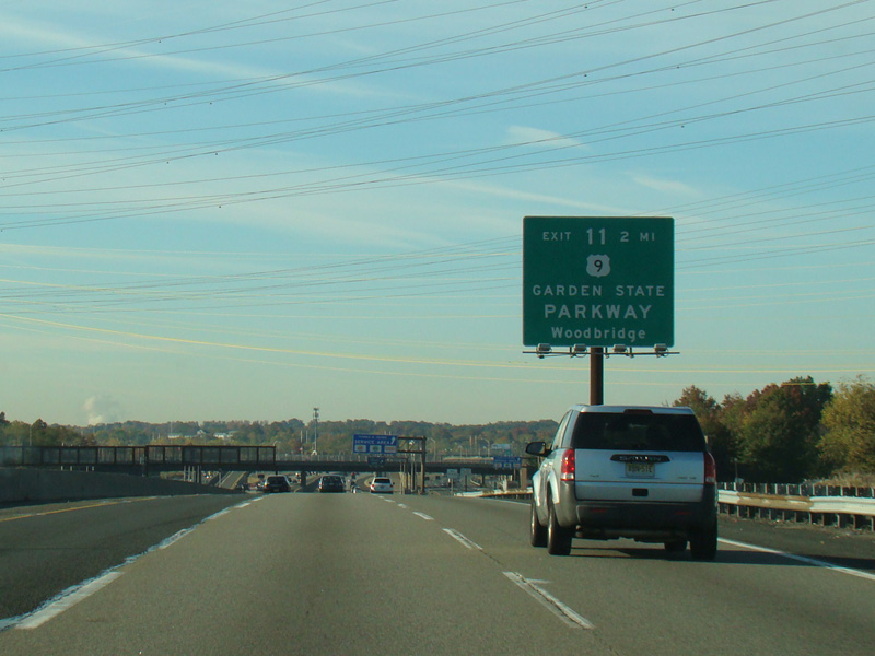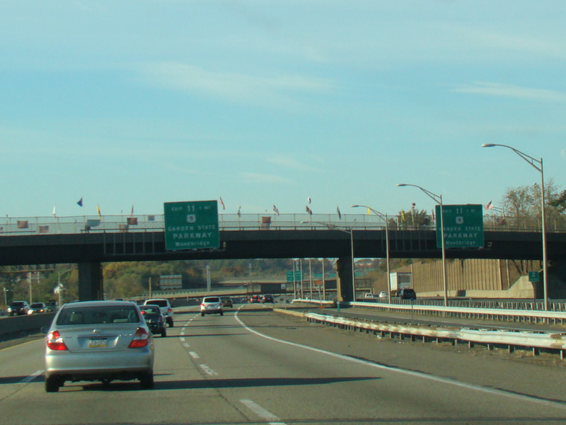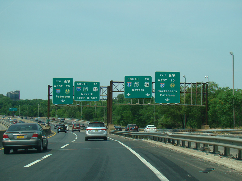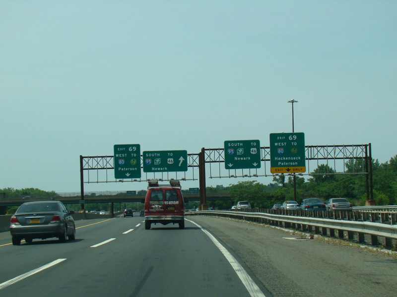 These pictures show the beginning of the New Jersey Turnpike, just past the George Washington Bridge, prior to the installation of a cashless tolling gantry in the area. The signs shown have been consolidated down to a single sign bridge to make room for the gantry.