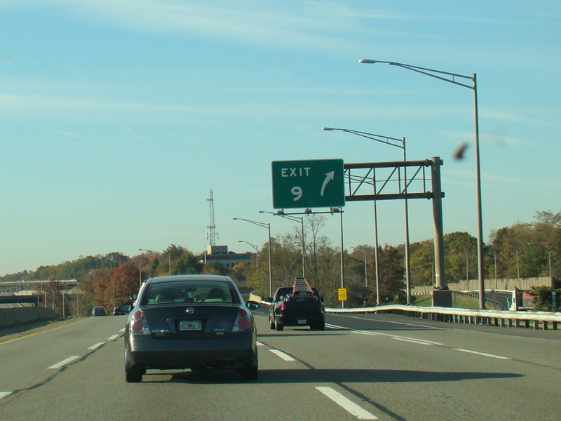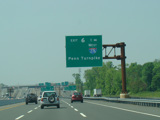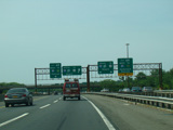 These pictures show the turnpike southbound prior to the extension of the car/truck lanes south to exit 6. All signs shown in the pictures have been replaced.