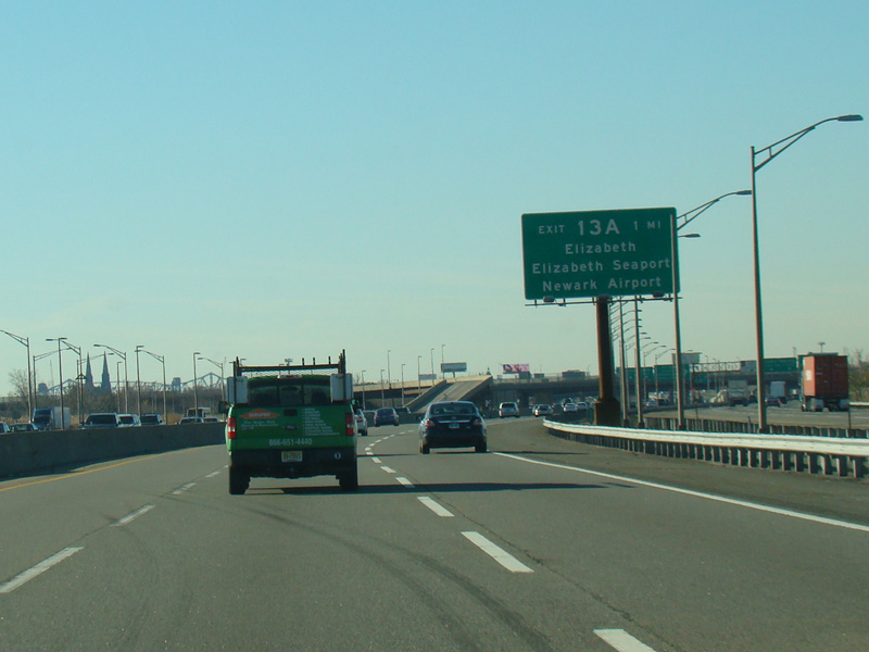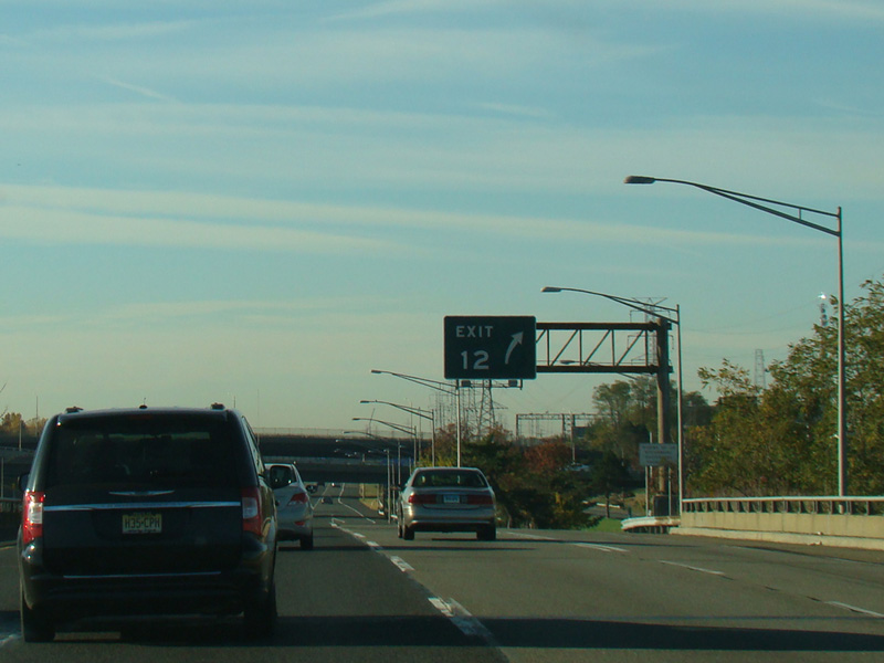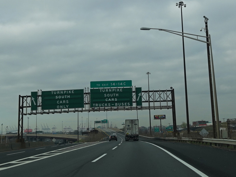 These signs, which were in a distinctive style unique to the New Jersey Turnpike, used to mark exits 13A-9. They have all been replaced with new MUTCD-compliant signage.