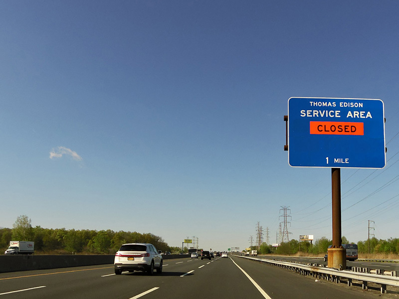 These pictures show the signage for the Thomas Edison Service Area as it appeared while the service area was closed for construction.