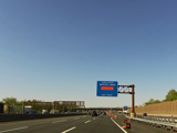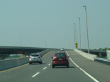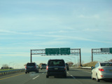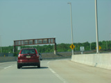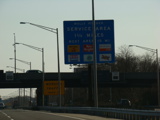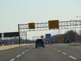 These pictures were taken just before the extended car/truck lanes opened to traffic. The variable message signs displayed red warnings advising motorists to stay out of the inner lanes.