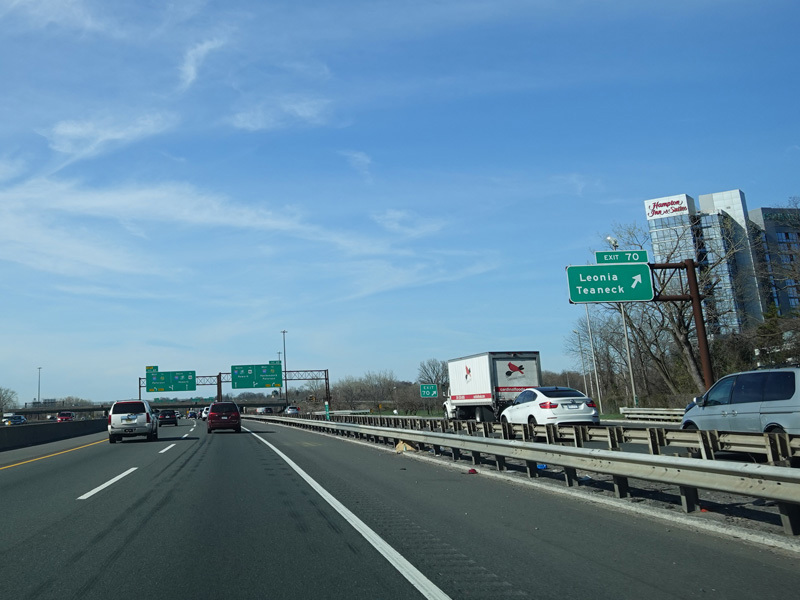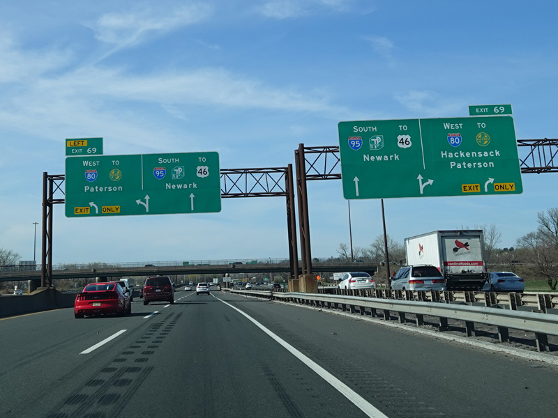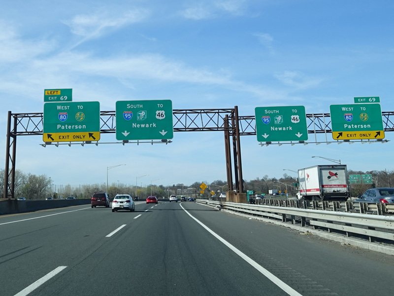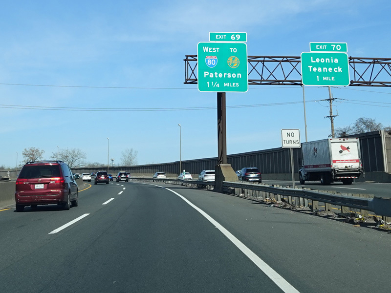 Exit 69 is for the Bergen-Passaic Expressway (I-80) west, which begins here. There is access to the Garden State Parkway (NJ 444) from I-80 several miles to the west.