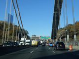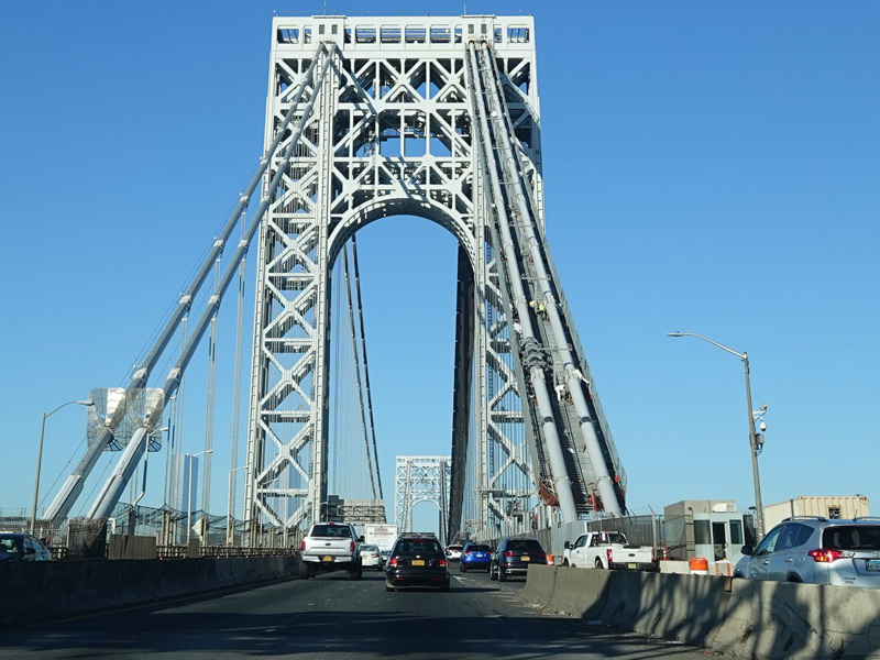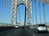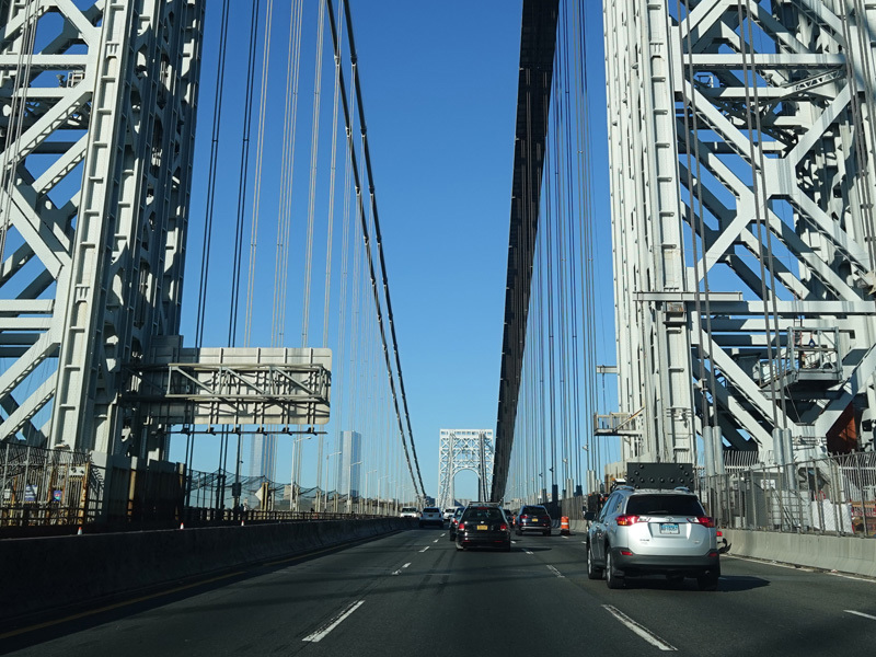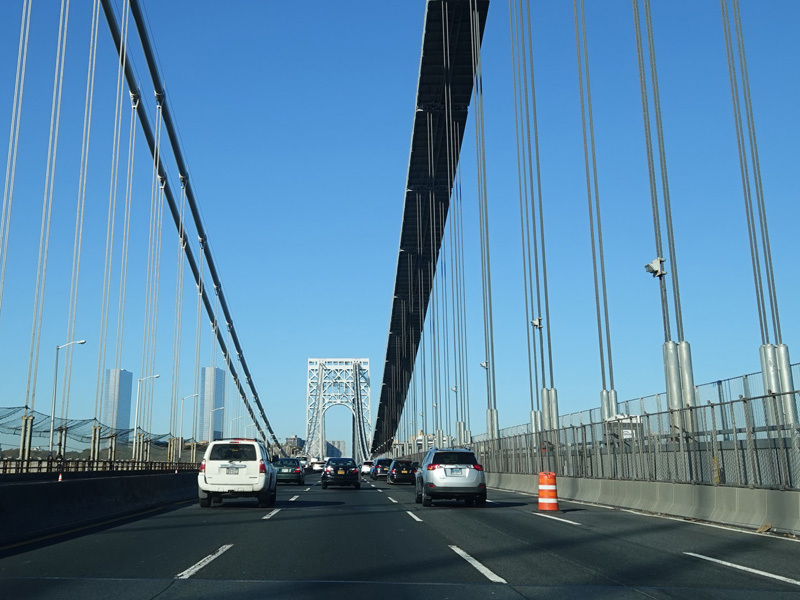 The George Washington Bridge crosses the Hudson River from New York to New Jersey.