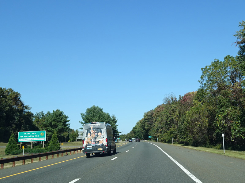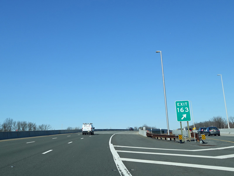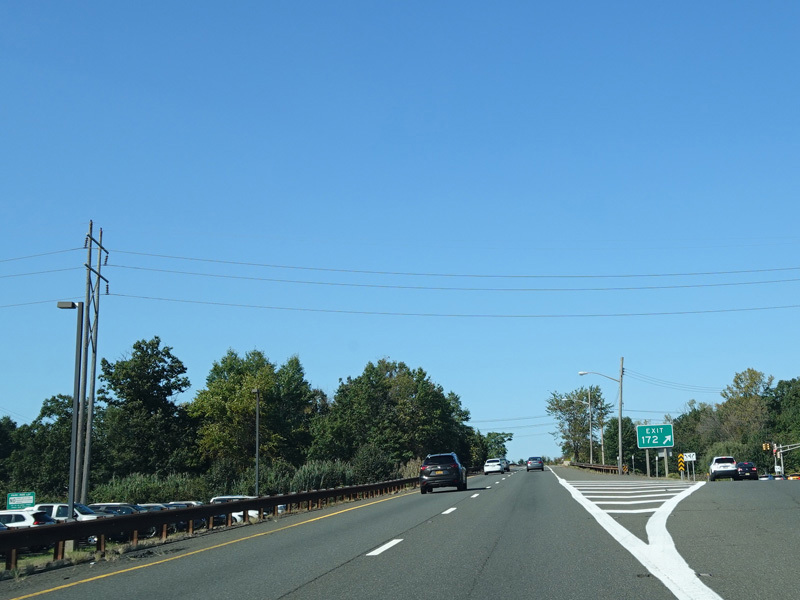 Exit 172 is the last exit in New Jersey. The parkway continues straight ahead into New York for a short distance.
