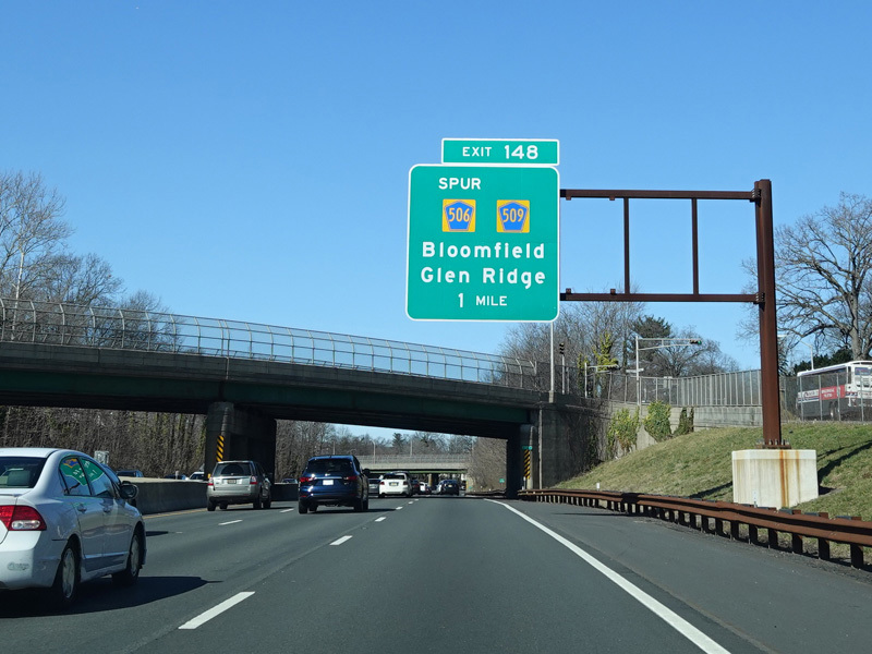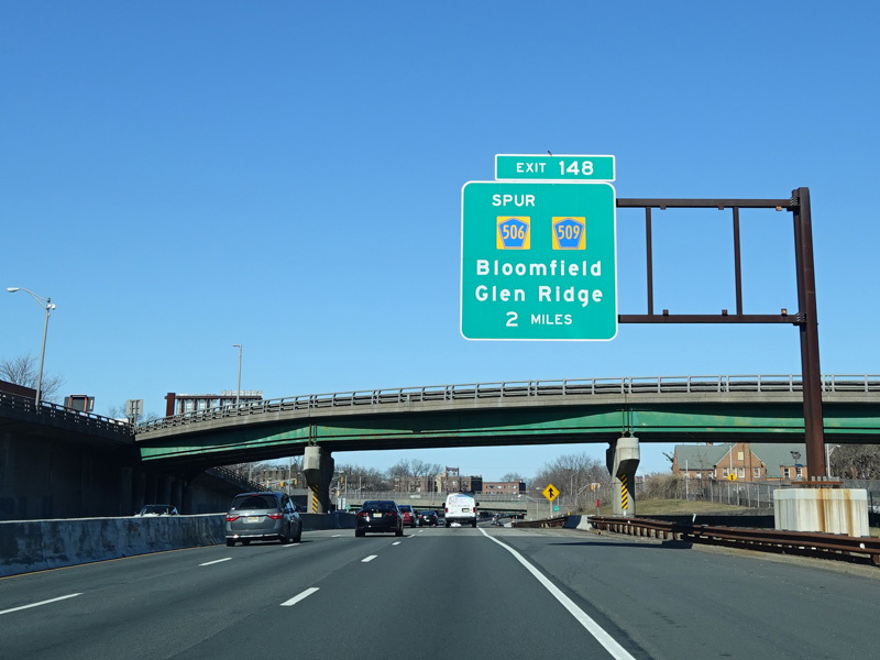 Exit 148 is for Bloomfield Avenue (Spur CR 506) and Franklin Street (CR 509).