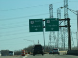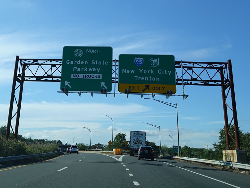 The ramps from US 9 and NJ 184 merge together and then split. Bear left to get on the parkway heading north. Bear right for the New Jersey Turnpike (I-95).