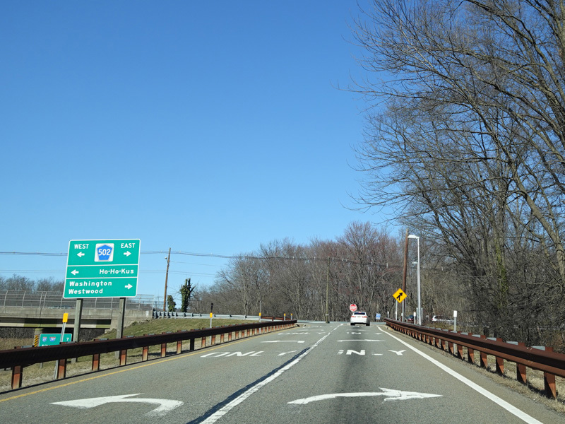 The ramp for exit 168 ends at a stop sign at Washington Avenue (CR 502). Turn right to go east or left to go west.