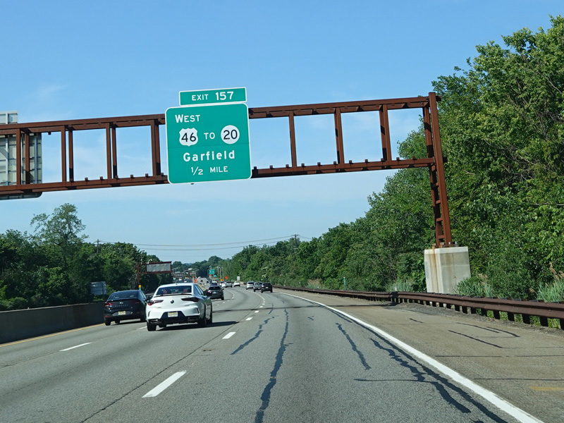 Exit 157 is for US 46 west and McLean Boulevard (NJ 20).