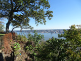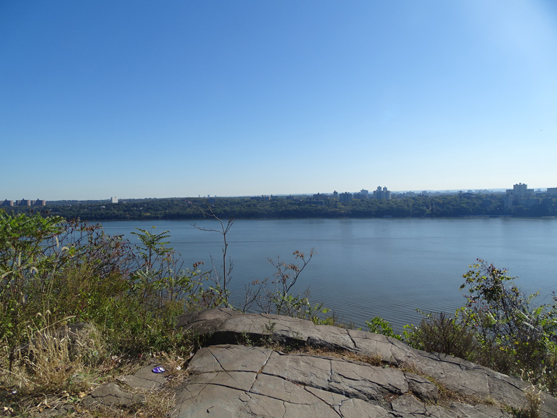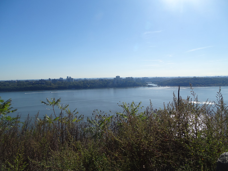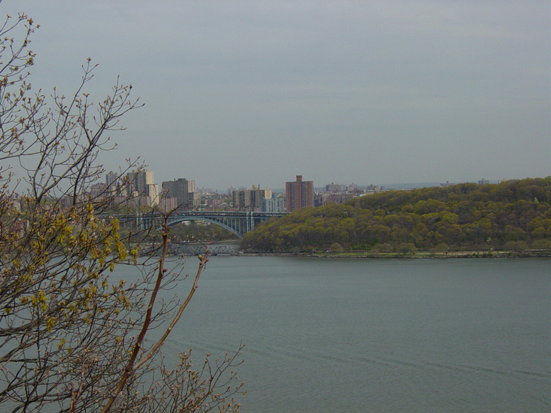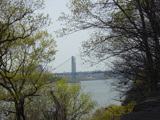 These pictures were taken from the Rockefeller Lookout. There are views of the Hudson River, the George Washington Bridge (I-95/US 1/US 9), and the Henry Hudson Bridge (NY 9A).