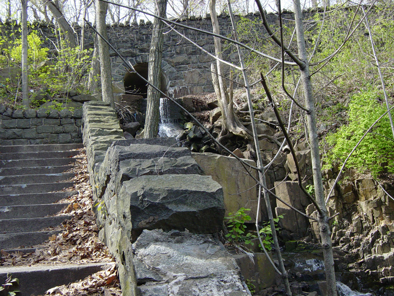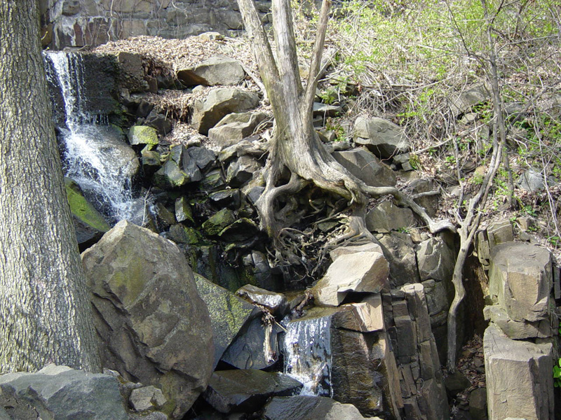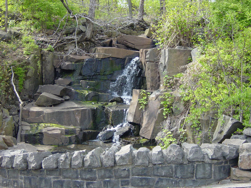 These pictures were taken in Palisades Interstate Park near exit 1 in Englewood Cliffs. There is a waterfall in the park, as well as views of the Hudson River, the George Washington Bridge (I-95/US 1/US 9) and the Henry Hudson Bridge (NY 9A).