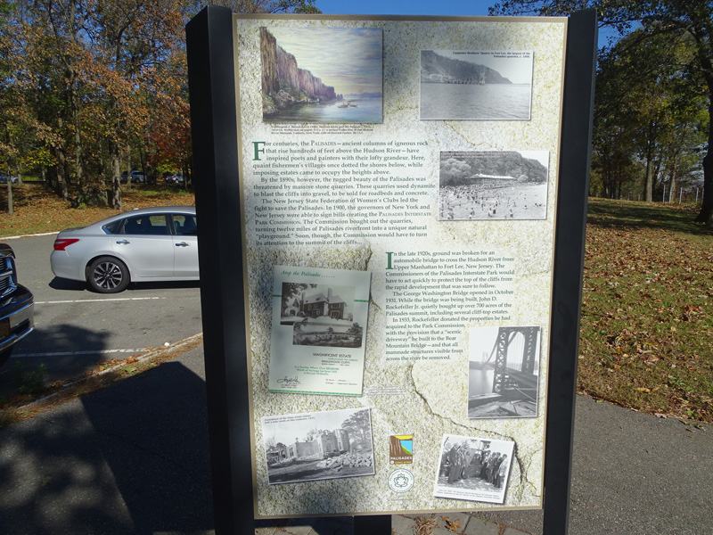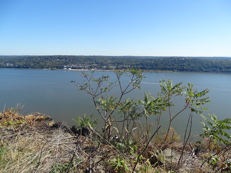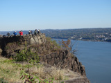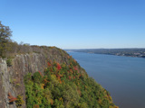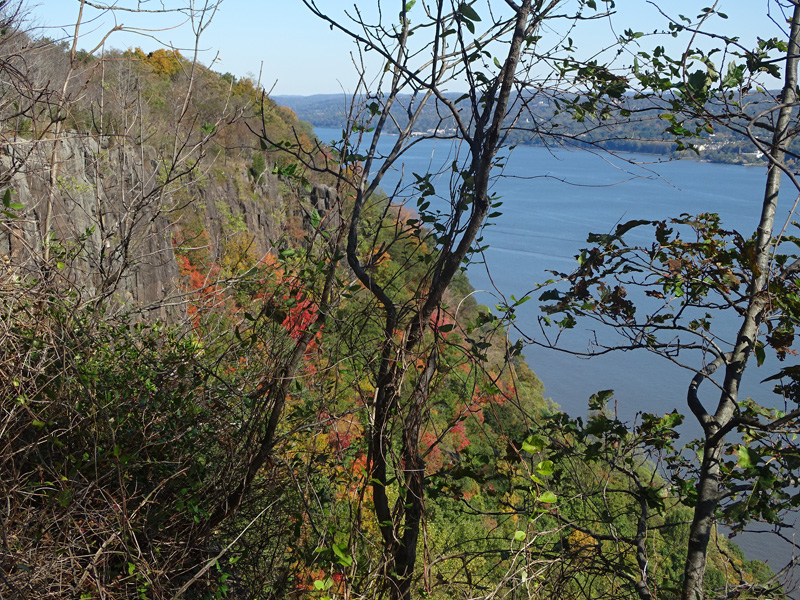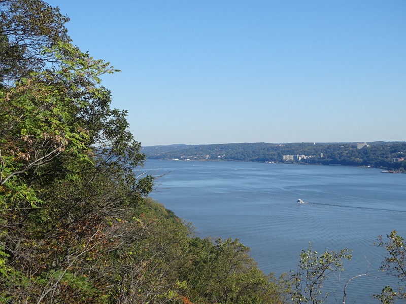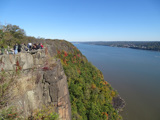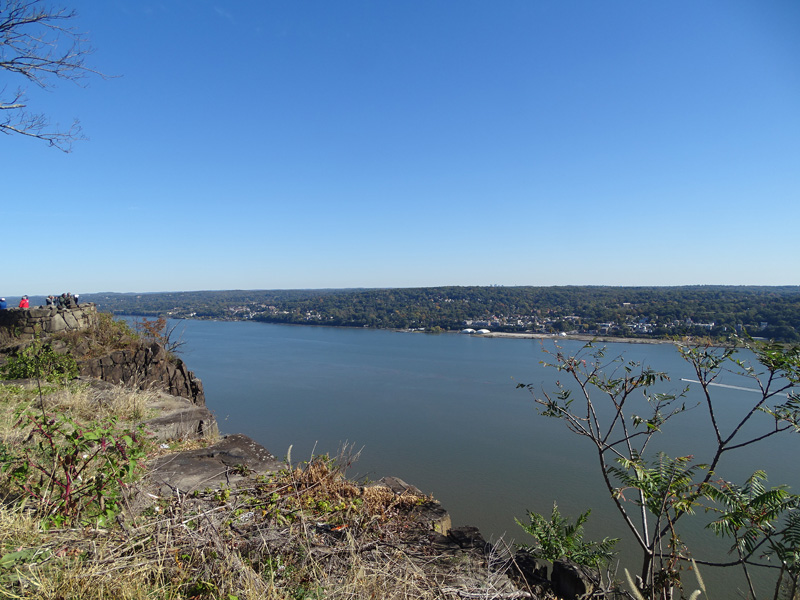 These pictures were taken from the State Line Lookout. There are views of the cliffs along the Hudson River and the Governor Mario M. Cuomo Bridge (I-87/I-287), formerly known as the Tappan Zee Bridge.