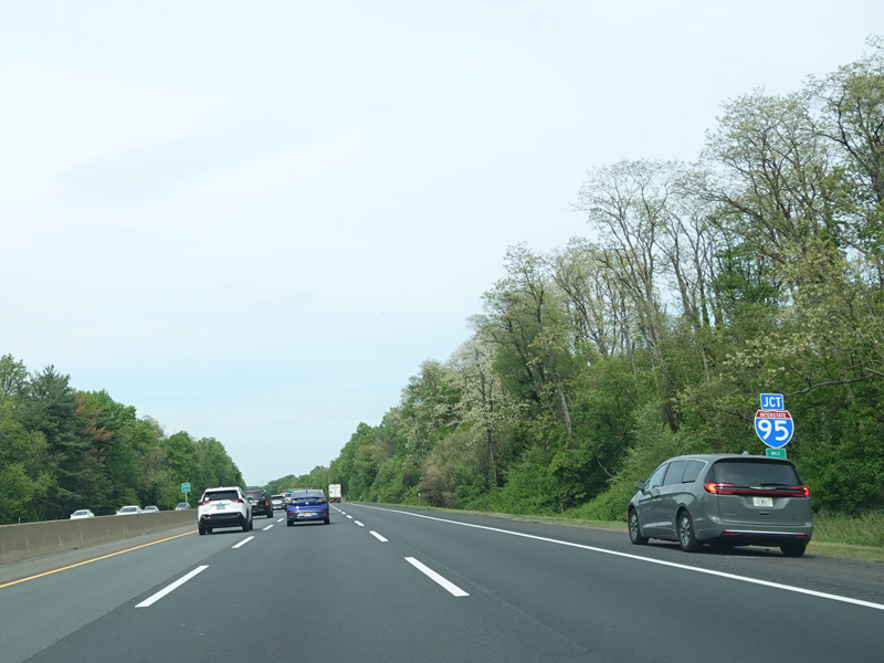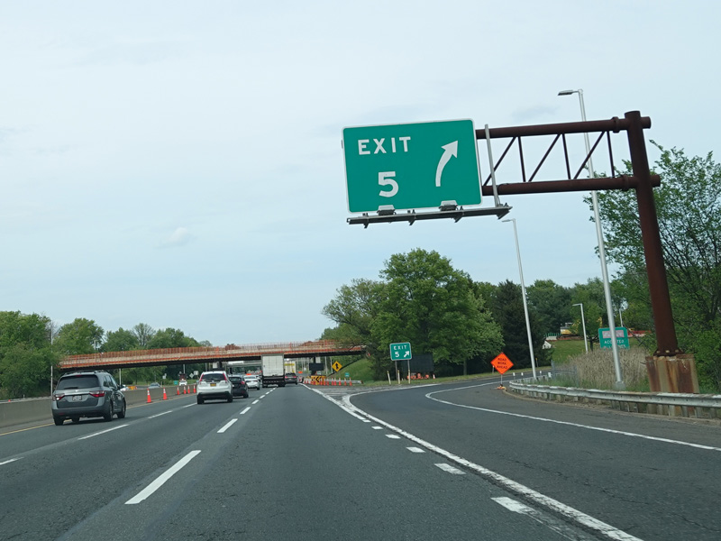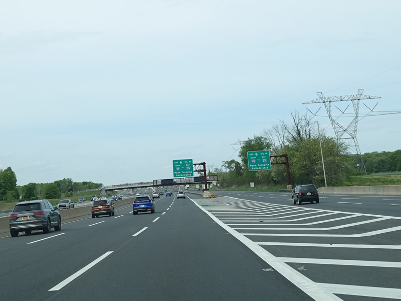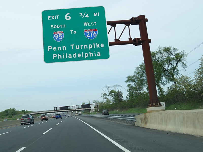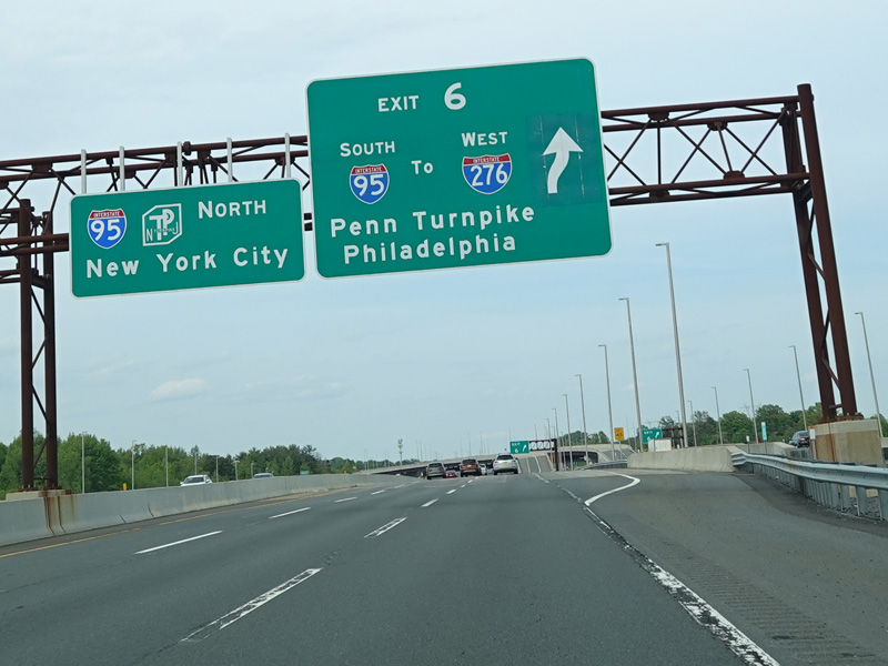 Exit 6 is for I-95 south, a turnpike extension that provides access to the Pennsylvania Turnpike (I-276) and US 130.