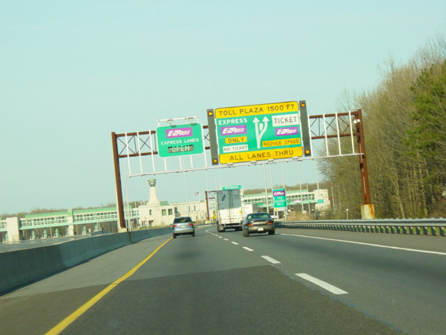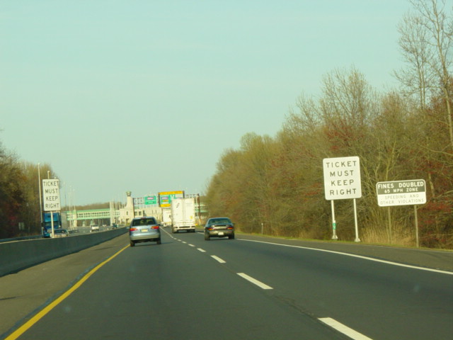 These pictures show the turnpike northbound at exit 6 as it appeared when the car/truck lanes only extended as far south as exit 8A. All signs shown have been replaced as part of the construction of the new lanes.