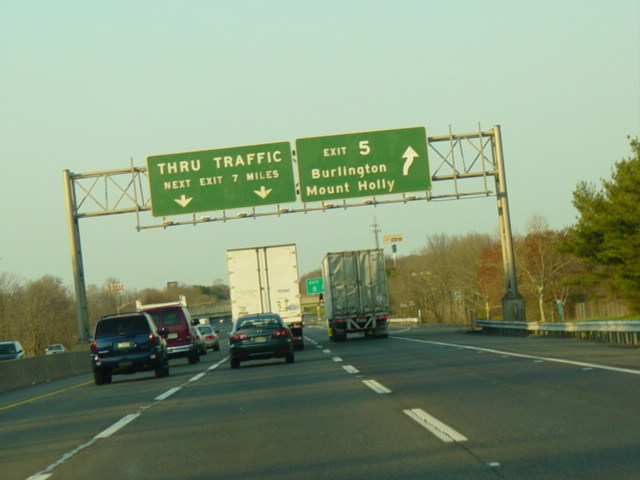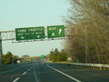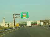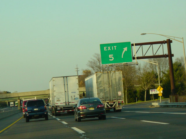 These pictures show exit 6 as it appeared when the car/truck lanes had been extended south but the I-95/I-276 interchange in Pennsylvania was still under construction. At that time, I-95 was unsigned in the area. Exit 6 was marked solely for I-276, and the turnpike transitioned from NJ 700 to I-95 without any indication in the signage.