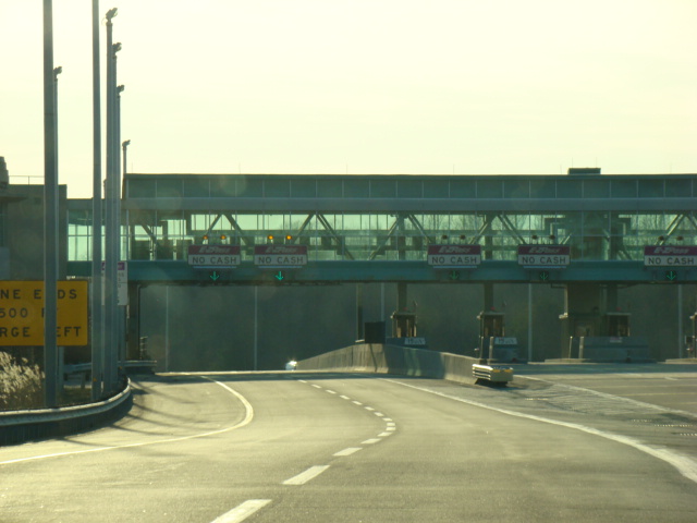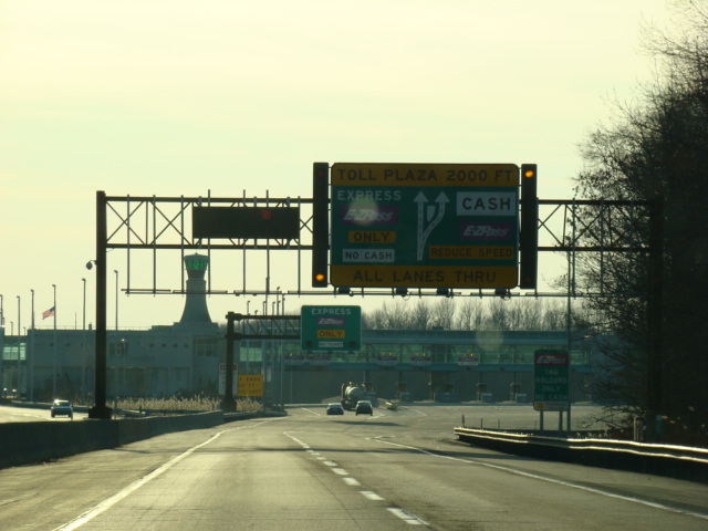 At the southern end of the turnpike, there is a toll plaza. All motorists who don't have E-ZPass must hand in their tickets and pay a toll depending on how far they've travelled on the turnpike.
