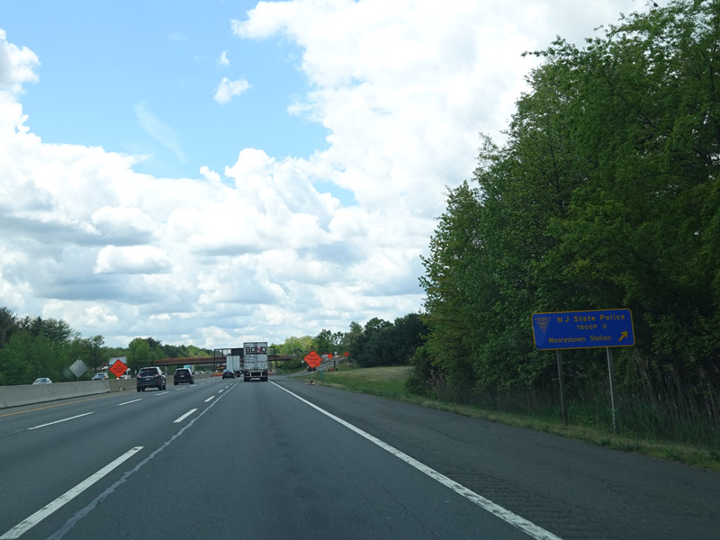 South of exit 6, the turnpike has the unsigned designation NJ 700. The car and truck lanes merge together to form a single three-lane roadway in each direction.