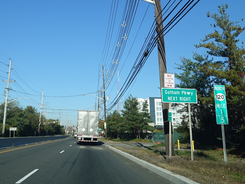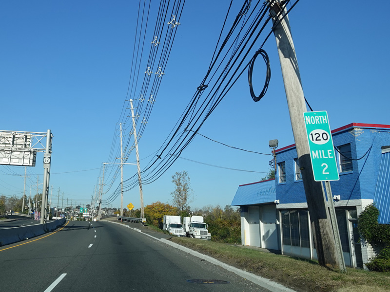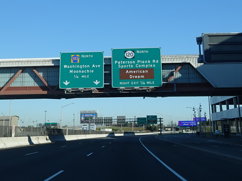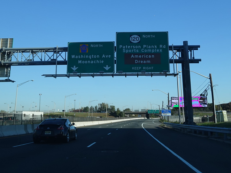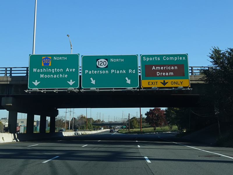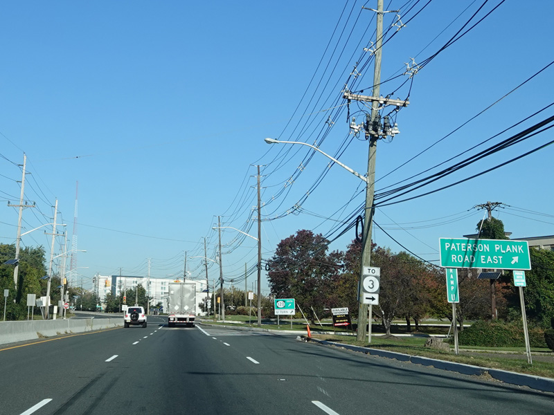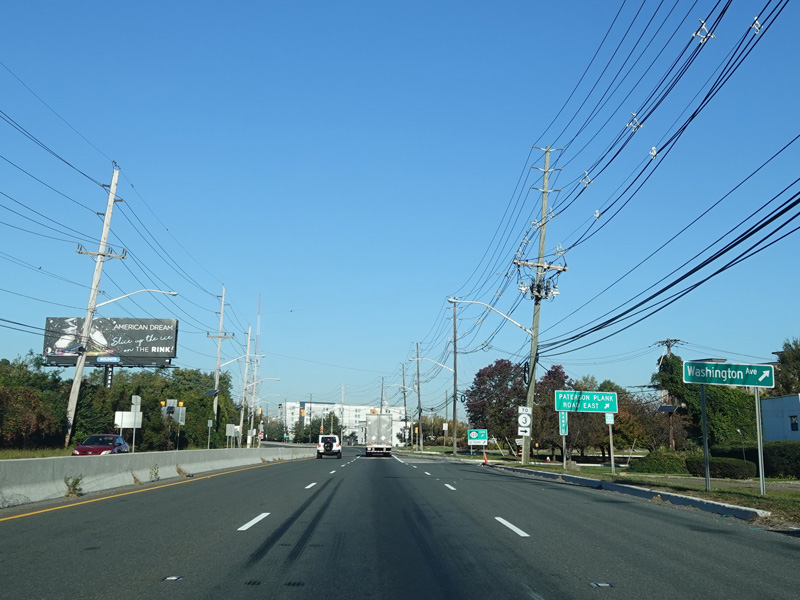 NJ 120 begins at NJ 3. The first section is a very short expressway. As the expressway ends, bear right onto Paterson Plank Road to stay on NJ 120. Washington Avenue (CR 503) is straight ahead.