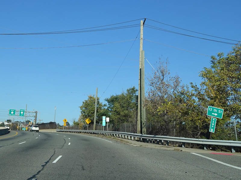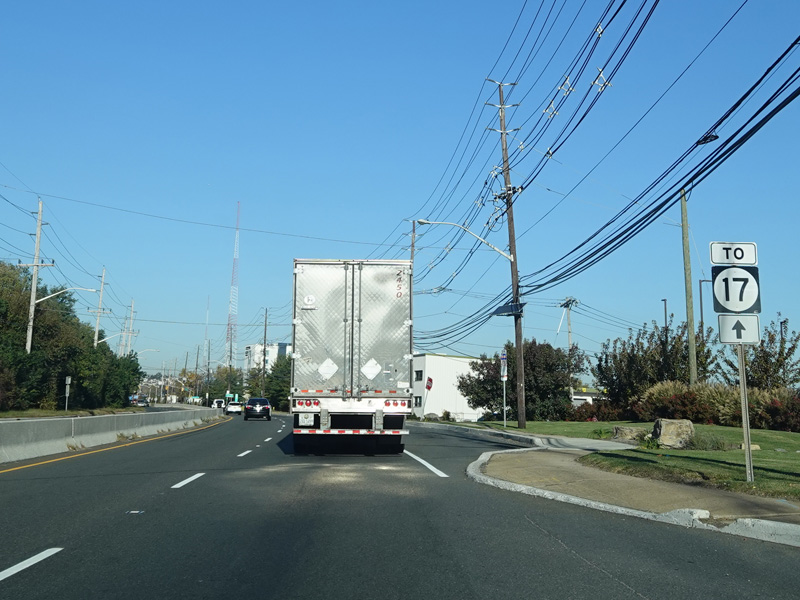 Paterson Plank Road ends at a grade-separated interchange with NJ 17. Take the first right to go north or the second right to go south. Paterson Avenue is straight ahead.