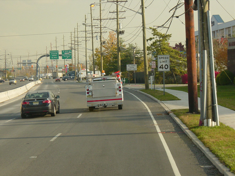 Paterson Plank Road runs east through East Rutherford as a four-lane divided highway.