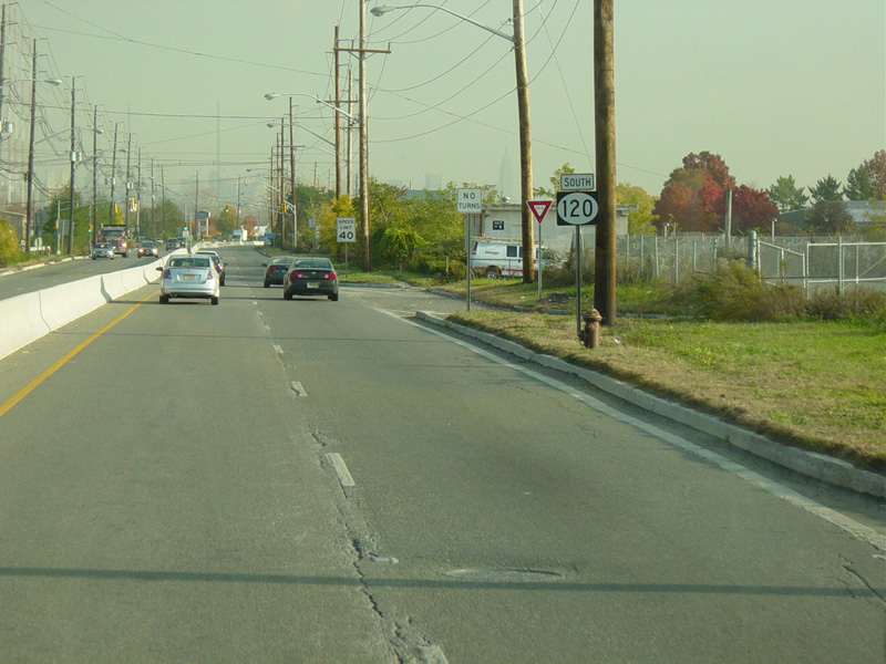 The roadway splits. Bear left for Washington Avenue (CR 503) north. Bear right to stay on NJ 120. There is a second section of Paterson Plank Road that exists as a local street and is accessible through CR 503.
