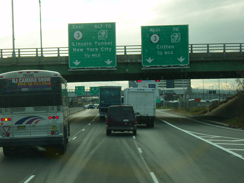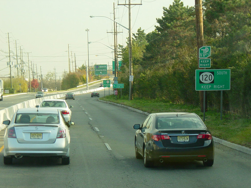 The last section of NJ 120 is a very short expressway. There is an exit for the Meadowlands sports complex. NJ 120 ends at NJ 3. Bear right to go west or bear left to go east.