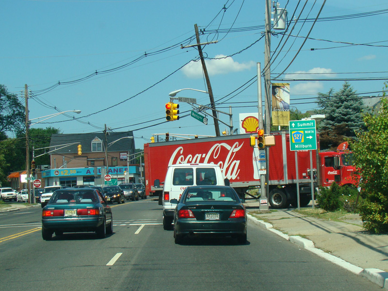 There is a traffic light at Millburn Avenue (CR 527). Turn right to go north. Continue straight ahead for southbound CR 527.