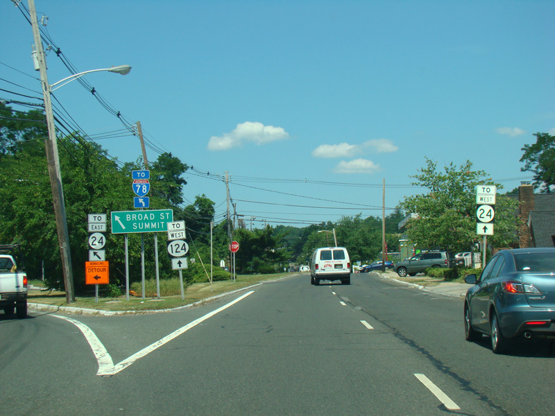 Skipping west to Morristown, NJ 124 is known as South Street. There are traffic lights at Elm Street, Miller Road, and DeHart Street.