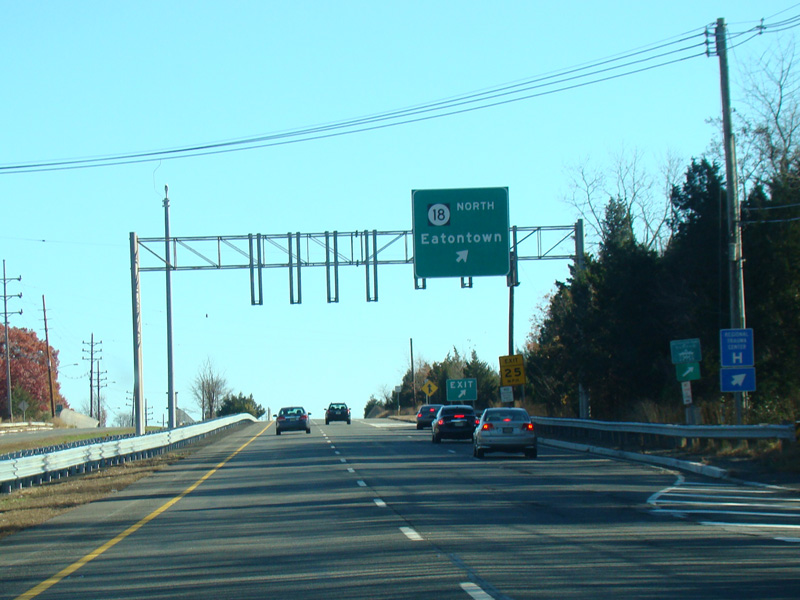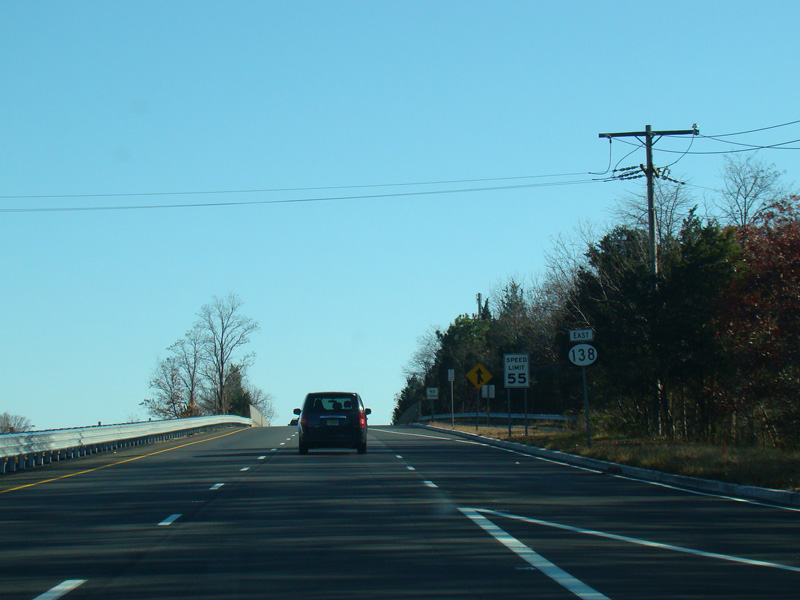 I-195 turns into NJ 138 at its eastern terminus at NJ 34. There is a partial interchange with the Garden State Parkway (NJ 444). From this direction, there is only a northbound entrance. Motorists wishing to go south must take exit 35A from I-195 and use NJ 34 to cut the diagonal.