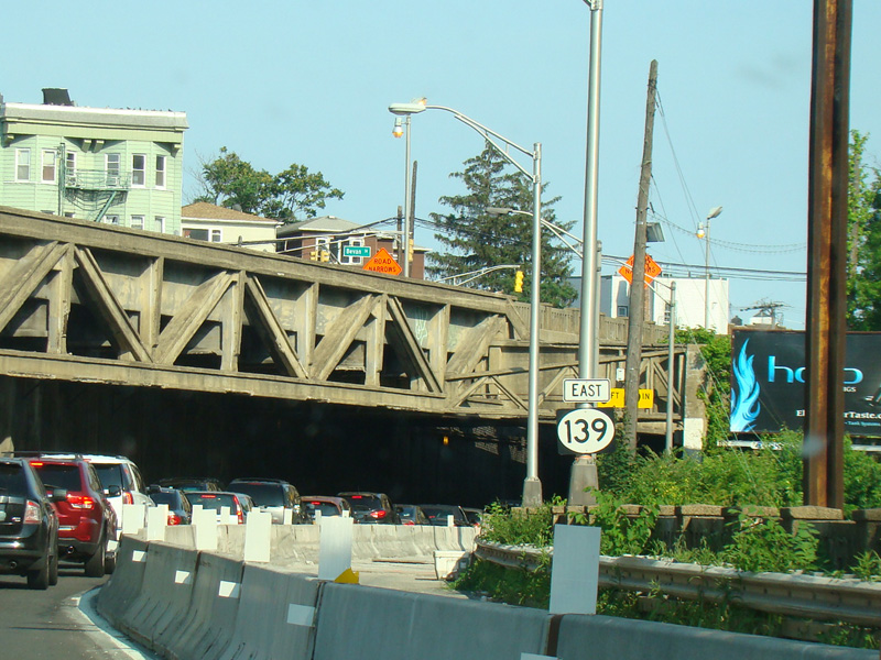 NJ 139 begins at the Pulaski Skyway (US 1/US 9) in Jersey City. It immediately goes under a long ramp connecting Kennedy Boulevard (CR 501) to the Holland Tunnel approach. Hence, it is often referred to as the "covered roadway."