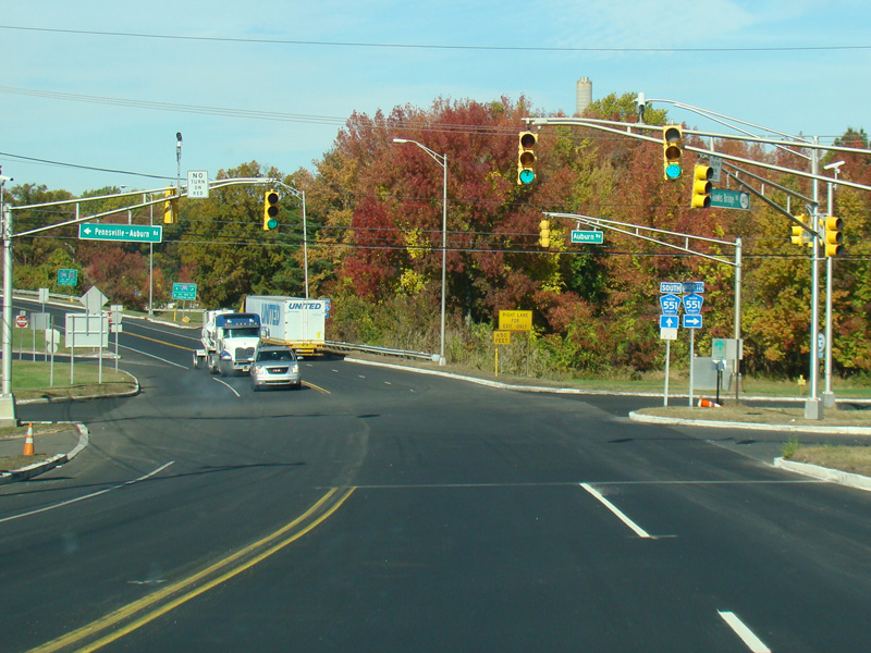 Hawks Bridge Road begins at the southernmost exit of the New Jersey Turnpike (NJ 700) where US 40 splits off. There is a traffic light at Pennsville-Auburn Road and Auburn Road (CR 551).