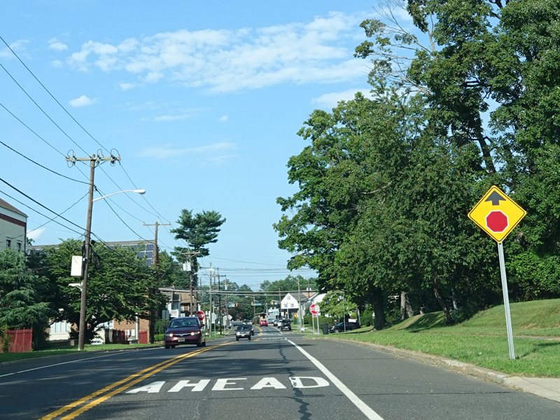 There is a stop sign at South Broad Street (CR 672). Turn right to go east or left to go west. There is no county route signage at this intersection.