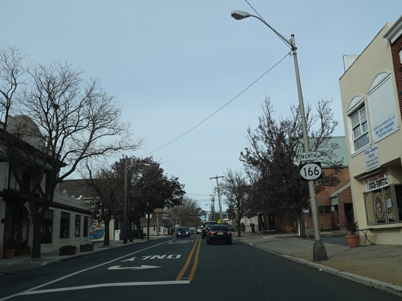 NJ 166 widens to become a four-lane divided highway. There is a traffic light with jughandles at NJ 37.