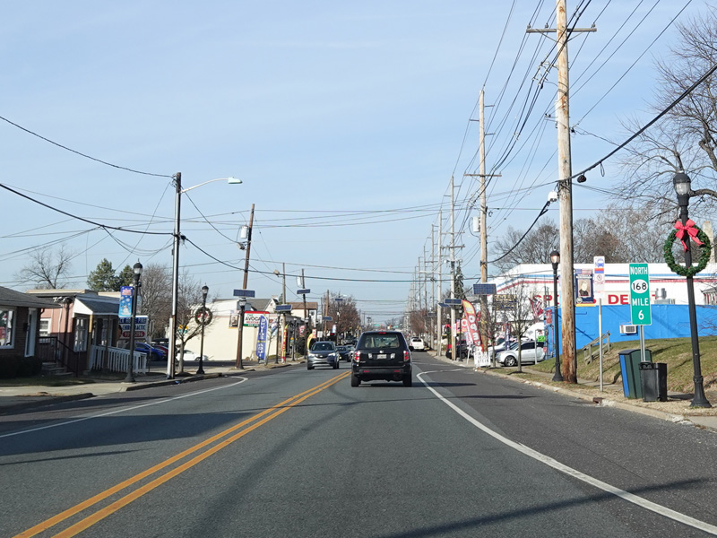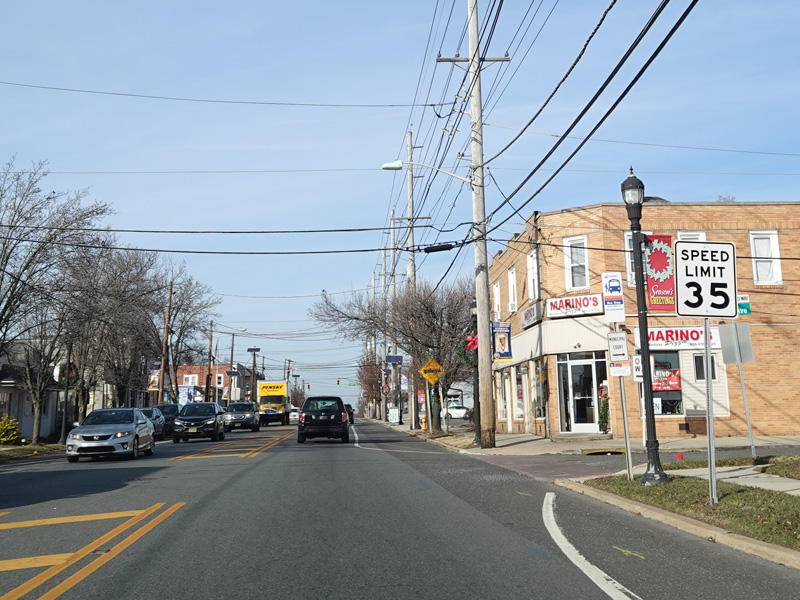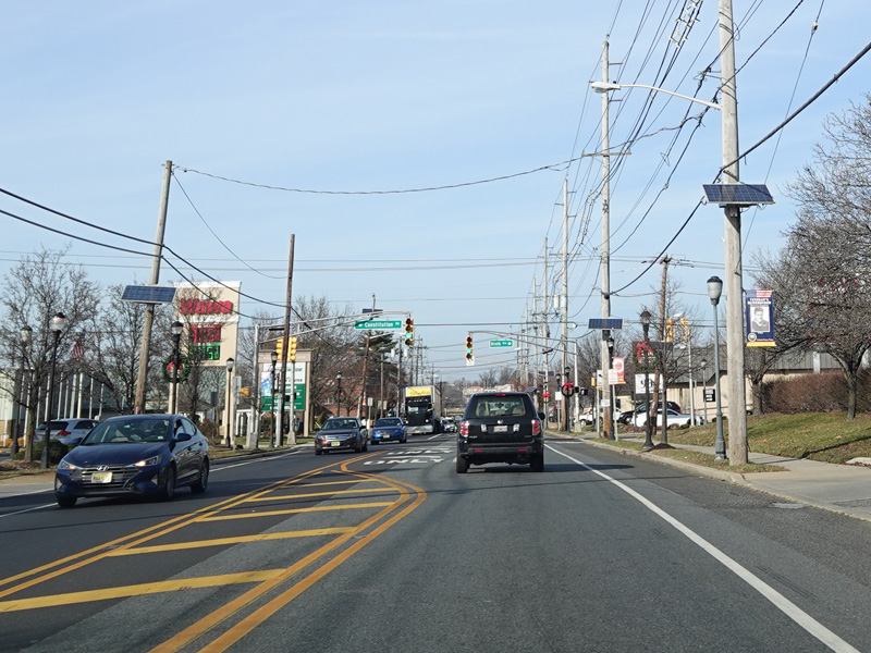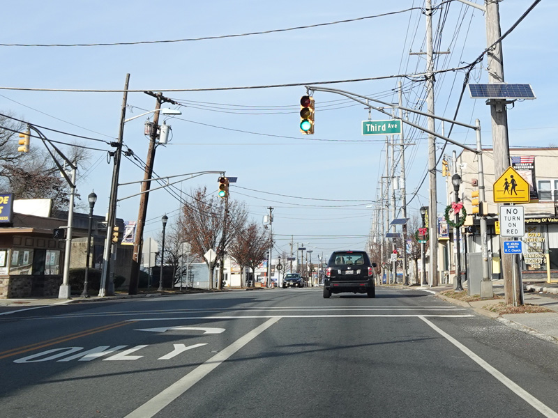 Black Horse Pike runs north as a two-lane undivided road. There are traffic lights at Third Avenue, Constitution Road, and Ninth Avenue.