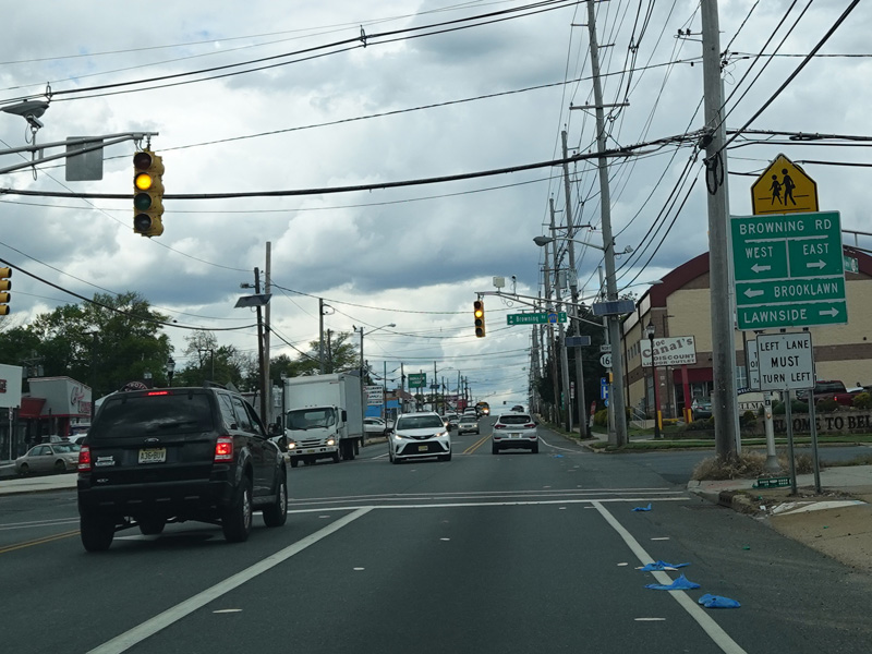 Black Horse Pike continues north as a two-lane undivided road. There is a traffic light at Browning Road (CR 659).