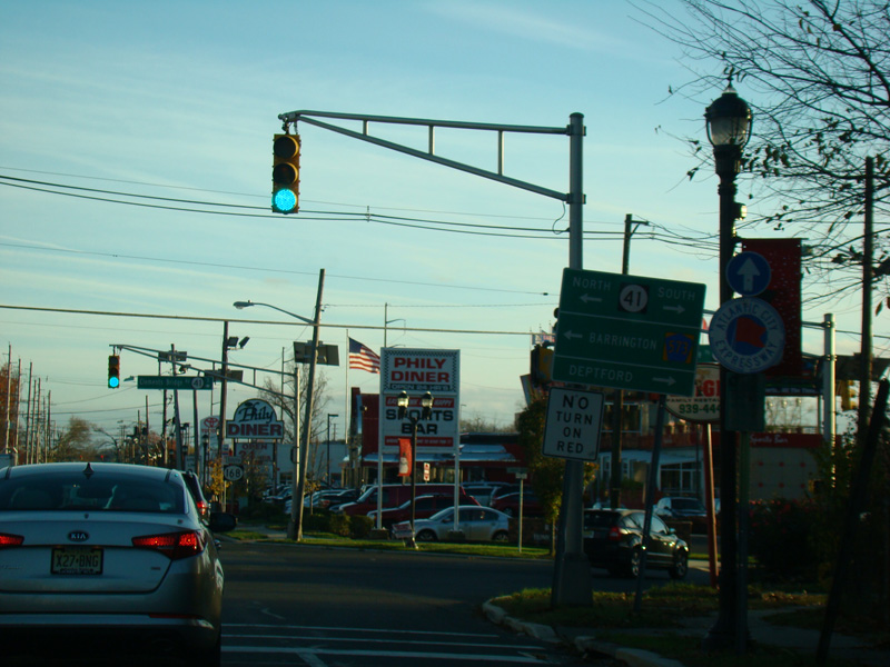 There is a traffic light at Clements Bridge Road (NJ 41/CR 573). Turn left to go north or right to go south.