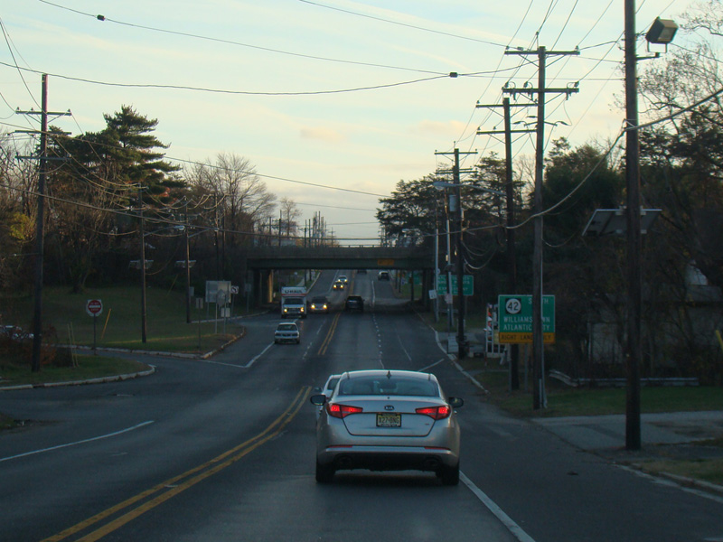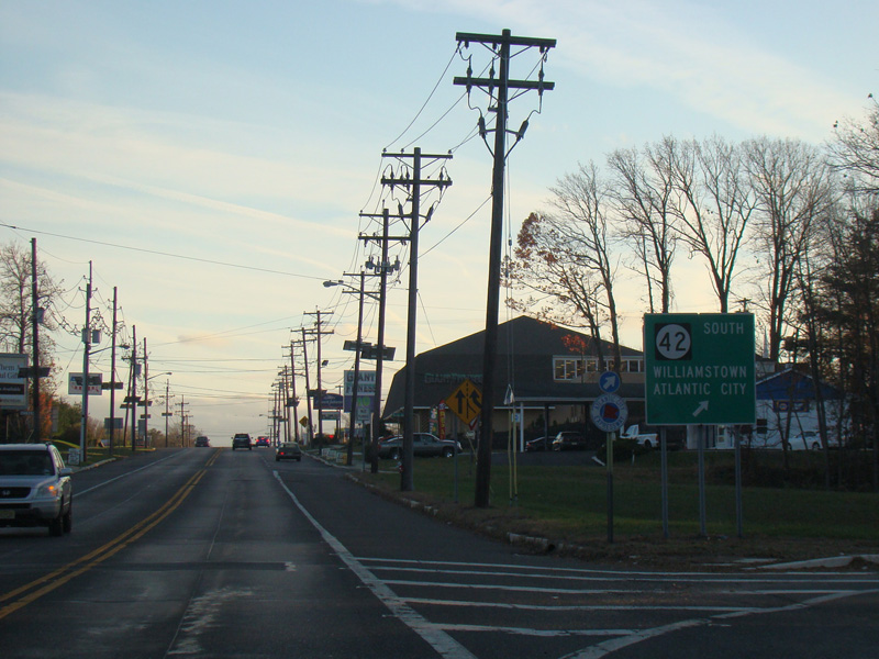 Black Horse Pike crosses the North-South Freeway (NJ 42). There is a southbound entrance ramp on the right.