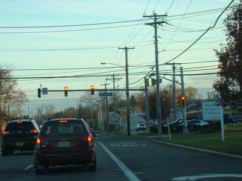 There are traffic lights at Wilson Road and Woodbury-Turnersville Road (CR 705).