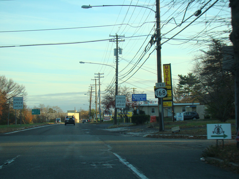 NJ 168 ends here. It narrows down to one lane and merges with a ramp from the North-South Freeway (NJ 42). Black Horse Pike continues straight ahead as NJ 42.