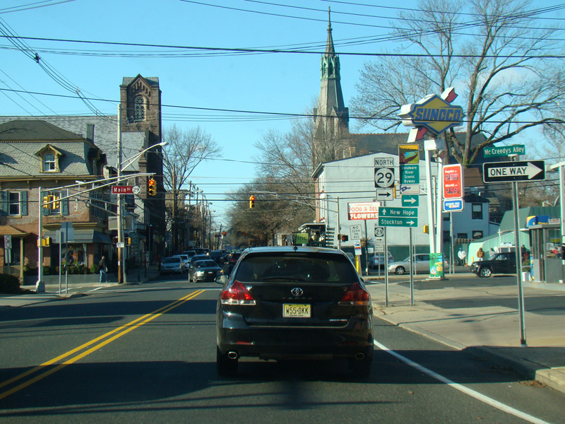 There is a traffic light at Main Street (NJ 29). Turn right to go north or left to go south.