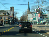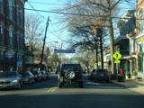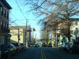 Bridge Street runs west through Lambertville as a two-lane undivided road. There is a traffic light at Union Street.