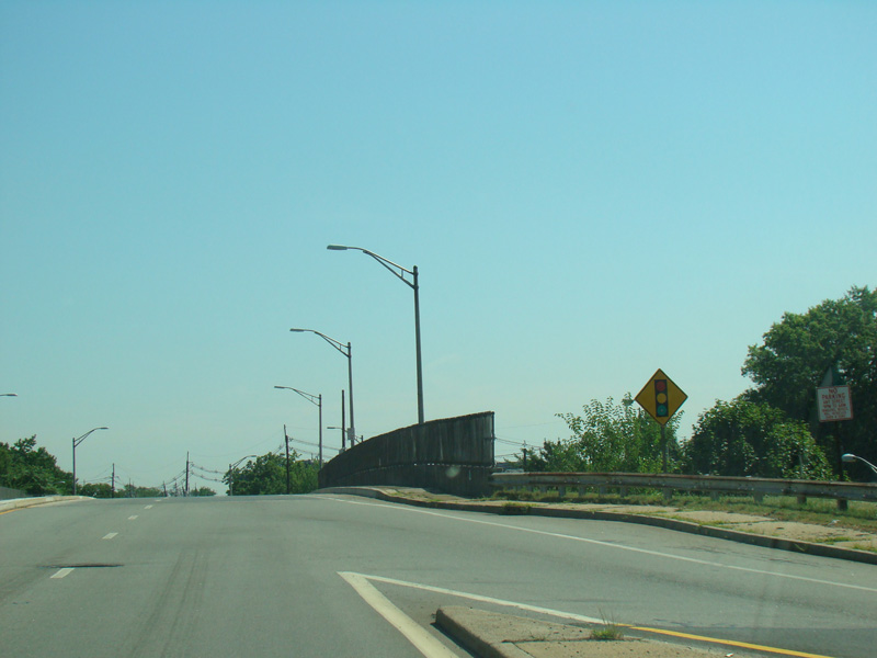 West Pond Road changes names to become Pfeiffer Boulevard. The roadway splits to become the service roads of the approach to the Outerbridge Crossing (NJ 440).