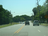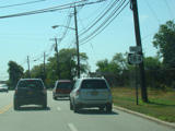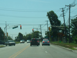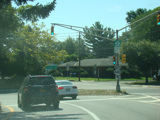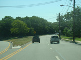 The divider ends. Here, NJ 184 is known as West Pond Road. There is a traffic light at Florida Grove Road (CR 655).