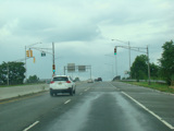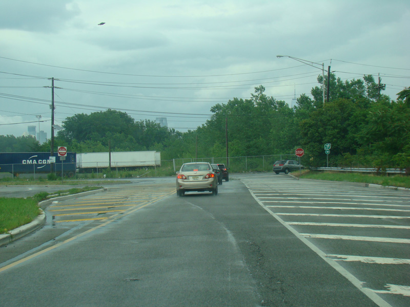 Caven Point Road ends at a stop sign at Linden Avenue.