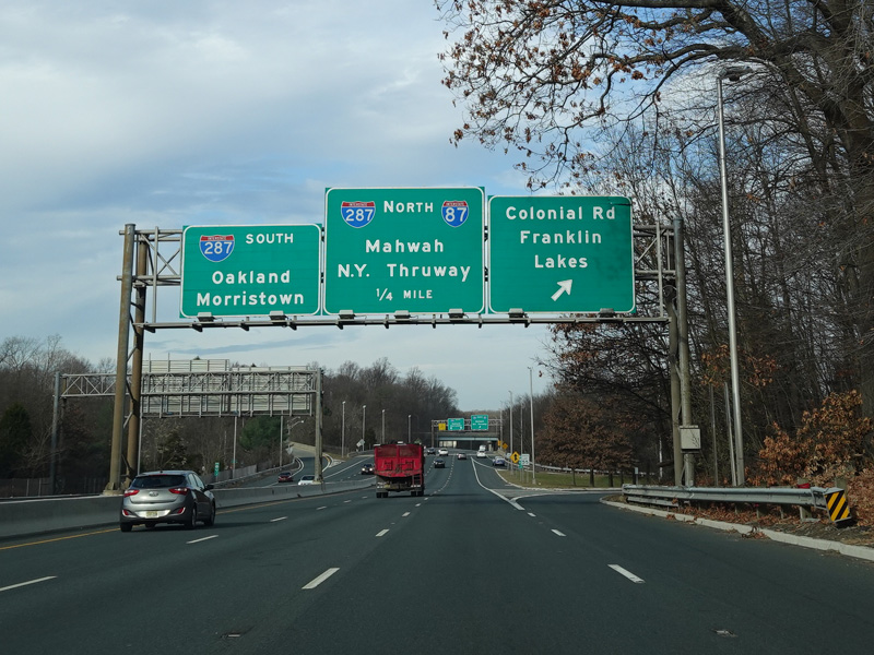 There is an exit for Colonial Road (CR 117). NJ 208 then ends at I-287. Exit to the right to go north toward the New York Thruway (I-87). Continue straight ahead to go south.