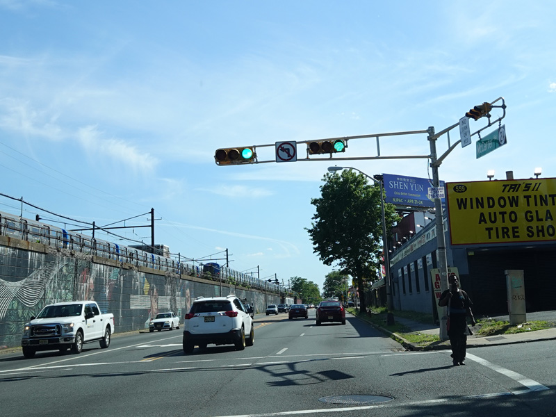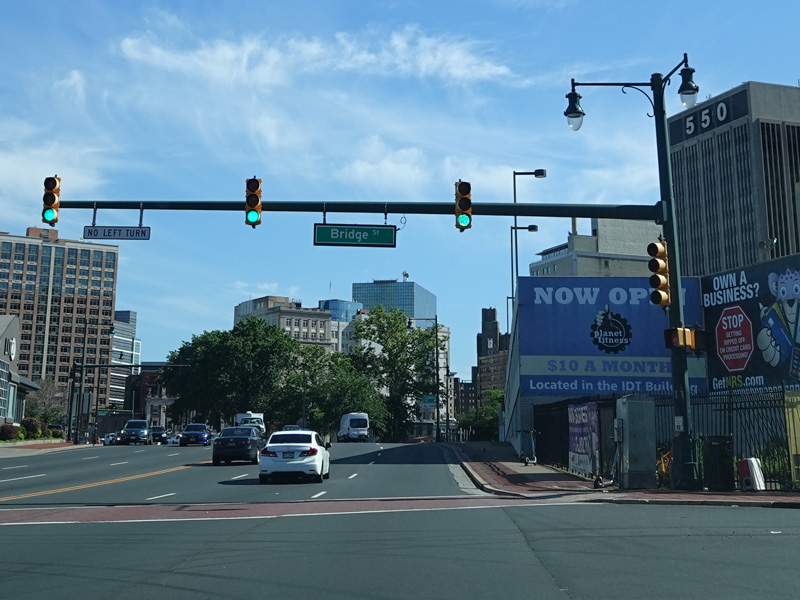 The McCarter Highway continues south through Newark. There is a traffic light at Bridge Street.