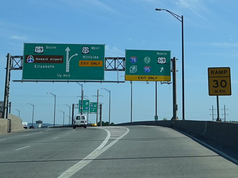 Just before it ends, the McCarter Highway becomes an expressway again. There is an exit for I-78, which provides access to the Garden State Parkway (NJ 444), US 1/US 9 north, and the New Jersey Turnpike (I-95).